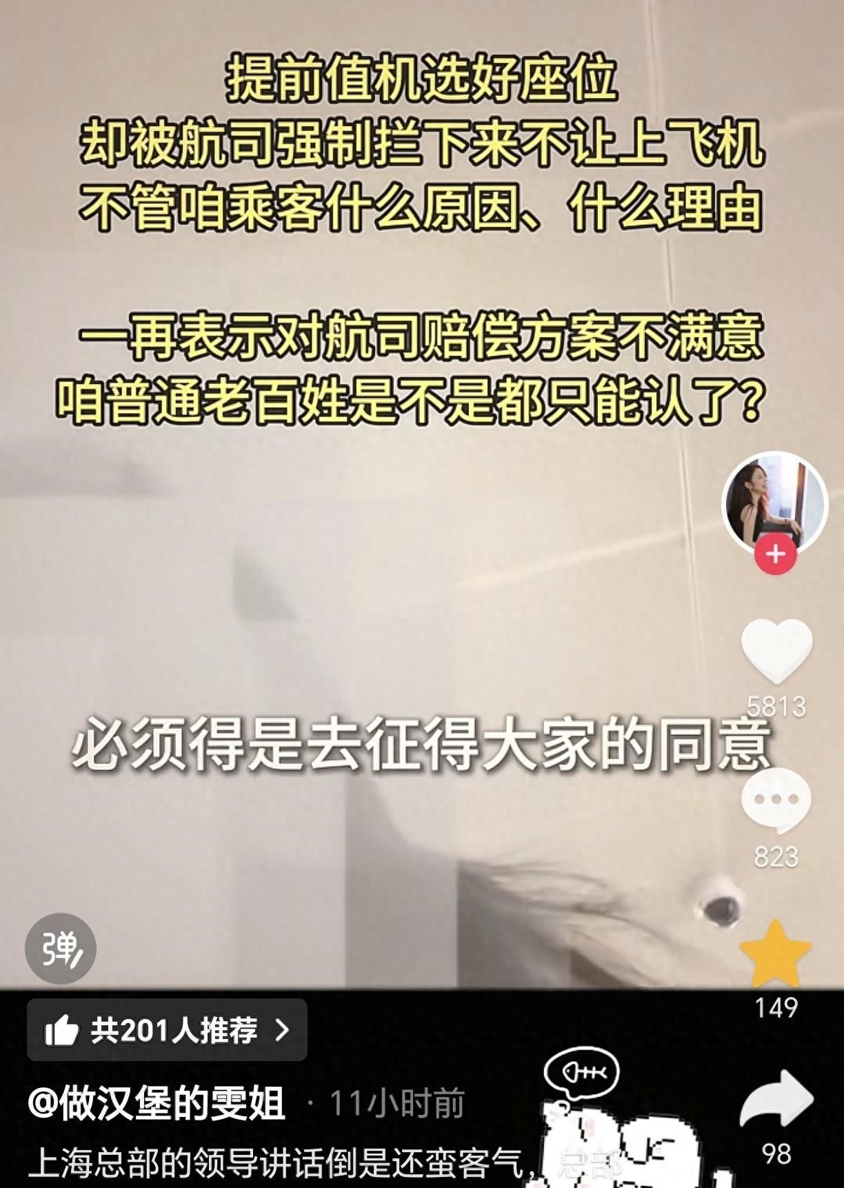 然而,航空公司却因为“超售”把她给拦下来,导致她错过了这班飞机,同时也错过了去上海看病挂好的专家号。